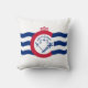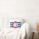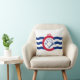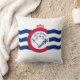 Throw pillow with flag of city of Cincinnati, Ohio; white flag with three blue waves with red “C” in the center
