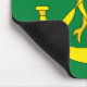 Mousepad with design with a flag of historic county of Huntingdon, in England, Great Britain; green flag with a gold ribboned hunting horn