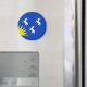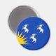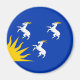 Magnet with design with a flag of historic county of Merioneth, in Wales, Great Britain; blue azure flag with three white goats and yellow sun