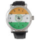 Watch with flag of city of Miami, Florida; flag with three horizontal bands of orange, white and green with emblem with an illustration of a palm tree in the center