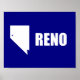 Poster with flag of city of Reno, Nevada; blue flag with white shape of Nevada with star symbolizing Reno’s location inside the state