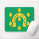 Mousepad with design with a flag of historic county of Rutland, in England, Great Britain; green flag with acorns and a golden horseshoe in the centre