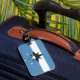 Luggage Tag with a design with the flag of Springfield, Missouri. A blue and white flag with a black and white star in the center