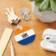 Nyckelkedja med flagga Albany, New York. En orange, vit och blå flagga med stadens emblem i mitten