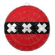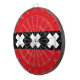 Dartboard med flagga av Amsterdam, huvudstad i Nederländerna, röd och svart flagga med tre vita Saint Andrew's kor i mitten