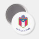 Magnet med flagga Austin, Texas. En vit flagga med stadens jackande av arm i centrum