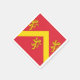 Papper napkin som konstruerats med en flagga av det historiska grevskapet Anglesey i Wales, Underbara Storbritannien; röd flagga med gult chevron och tre lejon; tilldelad arm av Hwfa ap Cynddelw, fylkets traditionella brige