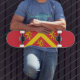 Skateboard med utformning i ett flagga av det historiska grevskapet Anglesey, Wales, Underbara Storbritannien; röd flagga med gult chevron och tre lejon; tilldelad arm av Hwfa ap Cynddelw, fylkets traditionella brige
