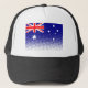 Australisk flagga med rastereffekt på bild. Anpassningsbarnas truckerkepsar. En skam för människor som kärlek Australien och dess kultur.