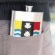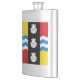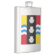 Flask med en flagga av det historiska distriktet Bedfordshire i England, Underbar Storbritannien; röd och guld flagga med svart lodrät band med träd vita kammusslor i mitten