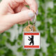 Square Keychain med flagga i Berlin, statlig flagga med vågrät rand av rött och vitt, med en illustration av en svart björn i mitten