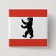 Kvadratknapp med flagga av Berlin, statlig flagga med vågrät rand av rött och vitt, med en illustration av en svart björn i mitten
