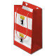 Papper påse med variant flagga av Berlin, statlig flagga med vågrät rand av rött och vitt, med en illustration av en svart björn inuti en sköld med krona