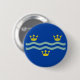 Round Button med design med en flagga av Cambridgeshire, i England, Underbara Storbritannien; blå flagga med tre gyllene krona och två vinkara