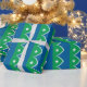 Förpackning Papper med en design med flagga av Cedar Rapids, Iowa. En grönt och blå flagga med vit stjärna