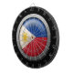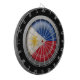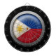Detta unika grafiska särdrag flagga av Filippinerna fastställd insida av en cirkulärmetallram. Den filippinska flagga har det utseendemässigt av att vara under ett biet av exponeringsglas med en ljus reflexion som är synlig upptill av designen. Flagga har en tillfogad grov struktur som kontrasterar slätafullföljandet av rostfritt stålramen. Detta cirkulärflaggamönster är en snyggt långt som av visar din patriotism.