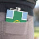 Vinylförpackad kolv med utformning med en flagga av det historiska grevskapet Derbyshire i England, Underbar Storbritannien; blå flagga med grönt kor och guld Tudor ro i mitten