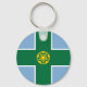 Keychain with design with a flagga of History county of Derbyshire, in England, Underbar Britain; blue flagga with a grönt kor and a guld Tudor ro in center
