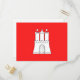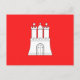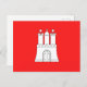 Brevkort med flagga av Hamburg, röd flagga med illustration av ett vitt slott med tre torn
