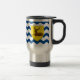 Travel Kopp med design med ett flagga av det historiska grevskapet Hertfordshire i England, Underbara Storbritannien; flagga med illustration av ett stag i en gult sköld på vit och blå vågigt bakgrund
