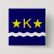 Square Button med design med flagga Kinshasa, huvudstad i Demokratiska republiken Kongo, blå flagga med vit våg, två gyllene stjärnor och brev "K" i mitten
