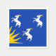Papper napkin med konstruktion med en flagga av det historiska grevskapet Merioneth i Wales, Underbara Storbritannien; blåazur flagga med tre vita getter och gult sol