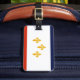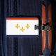 Bagagemärkre med flagga av staden av Philadelphia, Pennsylvania; flagga med tre vertikala musikband av blått och gult med stads vapensköld i centrera