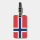Flagga av norgen är röd med en indigoblå blåttskandinavkor som skisseras i vit som fördjupa till kanterna av flagga; den vertikala delen av kor skiftas till hissasidan i stilen av Dannebrogen, flagga av Danmark.