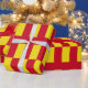 Slå in papper med design med en flagga av det historiska länet av Northumberland, i England, Storbritannien; röd och gul flagga som baseras på banret för St. Oswald