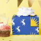 Pappra med formgivning med en flagga av det historiska grevskapet Merioneth i Wales, Underbara Storbritannien; blå azure-flagga med tre vita getter och gult sol