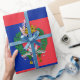 Papper med flagga Paris, huvudstaden Frankrike. En blå och röd flagga med jackat arm i mitten