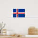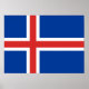 Islandets flagga (isländska: íslenski fáninn) beskrevs officiellt i lag nr 34 av den 17 juni 1944, den dag då Islandet blev en republik. Lagen heter "Flagga isländarnas och det statliga Armens lag" och beskriver det isländska flagga på följande sätt: islänningarnas civila flagga är blå som himlar med ett snö-vitt kor och ett bördrött kor i det vita kor. Armen i kor sträcker sig till kant i flagga, och deras sammanlagda bredd är 2/9, men den röda kor 1/9 av flagga sammanlagda bredd. De blå områdena är höger vinklade rektanglar, det rätlinjiga ytan är parallella och det yttre rätlinjiga ytan är lika stort som dem, men dubbelt så lång. Måtten mellan bredd och längd är 18:25. Islandets första flagga var ett vitt kor med en djup blå bakgrund. Det visades först i parad 1897. Det moderna data från 1915, då ett rött kor fördes in i det ursprungliga flagga vita kor. Kor representerar kristendomen. Det antogs och blev det nationella flagga när Islandet blev självständigt från Danmark 1918. För det isländska folket representerar flagga färg en vision av deras land landskap. Färg står för tre av de inslag som utgör ön. Röd är den brand som öns vulkaner orsakar, vit påminner om isen och snö som täcker Islandet och blå för Atlanten. Statlig flagga (Tjúgufáni) skiljer sig från det civila området, att de yttre rektanglarna är tre gånger längre än de hissade rektanglarna och är uppdelade i änden, avskurna direkt från ytterhörnen till mittlinjen. Den yttre rektangelns inre kant skärs vid 4/7 av ytterlängden och 3/7 av innerlängden på den yttre rektangeln. När denna nedskärning inträffar kant i det röda kor skärs den lodrätt.