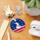 Button Keychain with flagga of city of Richmond, Virginia; blue flagga med rött och vitt rand, med vitt rand och silhouette av människor som arbetar vid James River Bateau längs James River