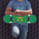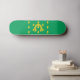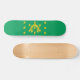 Skateboard med utformning med en flagga av det historiska grevskapet Rutland i England, Underbar Storbritannien; grönt flagga med akorns och en guldhäst i mitten