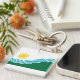 Nyckelkedja med en design med flagga Spokane, Washington. En vit och grönt flagga med blå linjer som symboliserar Spokanefloden och Spokanefalls och en gult sol