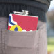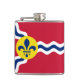 Vinylen slogg in flaskan med flagga av staden av St Louis; den röda flagga med vit- och blåttvågar och blått fleur-de-lys i gult cirklar