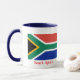 Strömflagga av Republiken Sydafrika adopterades på 27 April 1994, på början av riksdagsval 1994, för att byta ut flagga som hade använts efter 1928. Den nya medborgareflagga som var designad vid State härolden Frederick Brownell, valdes för att föreställa den nya demokratin. Flagga har horisontalmusikband av rött (på det bästa) och blått (på grunden), av den jämbördiga bredden som avskiljs av ett centralgröntmusikband, som delar in i en vågrät "Y", formar, ärmarna av som avslutar på, tränga någon av hissasidan (och följ flagga diagonals). Yet omfamnar en svart isosceles triangel som ärmarna avskiljs från av smala gula musikband; de röda och blåttmusikbanden avskiljs från det gröna musikbandet, och dess ärmar vid smal vit görar randig. Randarna på flugan avslutar äger rum i 5:1: 3: 1: förhållande 5.