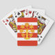 Poker-kort med design med en flagga av det historiska grevskapet Westmorland, i England, Underbar Storbritannien; vit och röd randig flagga med guldheraldisk äpple träd i mitten