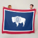 Denna utformning är utmärkande för Wyoming statlig flagga, som är en dubbelt låst stat i westerna Förenade Stater. Det är den näst mest glesbefolkade staten i land. Wyoming gränsar till norr av Montana, till öster av South Dakota och Nebraska, söderut av Colorado, sydväst av Utah och till väster av Idaho och Montana. Det officiell smeknamnet Wyoming är "Jämställdhetsstaten", men det kallas ibland också "Cowboystaten" eller "Big Wyoming". Wyomings westerna halva täcks till största delen av Rocky mountains, medan östrans halva stat är en högupphöjande priserie som kallas High Plains. Nationalparken Yellowstone ligger delvis i Wyoming och nationalparken Grand Teton ligger helt och hållet inom staten. Cheyenne är huvudstaden och Wyomings folkrikaste stad. I Wyomings flagga ingår en silhuett av en amerikansk bison. Rödet symboliserar infödda amerikaner och blodet för pionjärer som gav sina liv. Den vita är en symbol för renhet och uppriktighet. Det blå är färg i himlar och avlägsna berg.