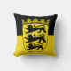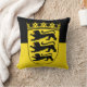 Dekorativ kudde med variant flagga av Baden-Württemberg; utformning med två vågrät av svart och gult (guldfärgad) och emblem med sköld med tre svarta lejon i mitten
