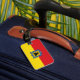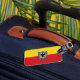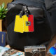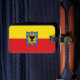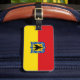 Bagagetagg med flagga av Bogota, huvudstad i Colombia, röd och gult flagga med jackande av arm med örn i mitten