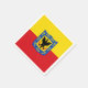 Papper napkin med design för flagga Bogota, huvudstad i Colombia, röd flagga och gult med jackande av arm med örn i mitten