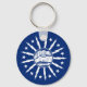 Button Keychain with flagga of city of Buffalo, New York; blue flagga med vit försegling av staden och 13 blixtar