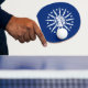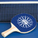 Ping Pong Paddle med flagga av staden Buffalo, New York, blå flagga med vit stadsäl och 13 blixtar
