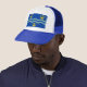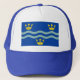 Hat med design med en flagga av Cambridgeshire, i England, Underbara Storbritannien; blå flagga med tre gyllene krona och två vinkara