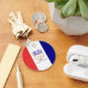 Button Keychain with flagga of city Cleveland, Ohio; flagga med tre färgband av rött, vitt och blått med stadens försegling i mitten