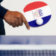 Ping pong-paddel med flagga av Cleveland, Ohio; flagga med tre lodräna av rött, vitt och blått med stadens försegling i mitten