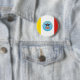 Round Button med flagga of Columbus, Ohio; flagga med tre lodräna av gult, vit och röd med blå sigill från staden med örn i mitten