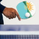 Ping Pong Paddle med ett mönster med flagga Coral Vår, Florida. En vit, grönt och blå flagga med en gult som stigning sol