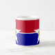 Mugg med flagga av staden Dallas, Texas; flagga med röd och blå vågrät med stadens försegling inuti en vit stjärna i mitten